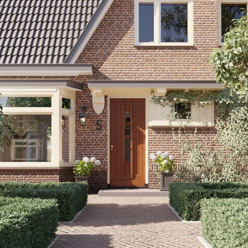 Daarnaast is veiligheidsisolatieglas mogelijk, uitgevoerd in blank of figuur. Deze glassoorten bieden extra bescherming en dragen bij aan een solide, duurzame voordeur.